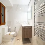 The apartment features a bathroom with hairdryers and towels.
